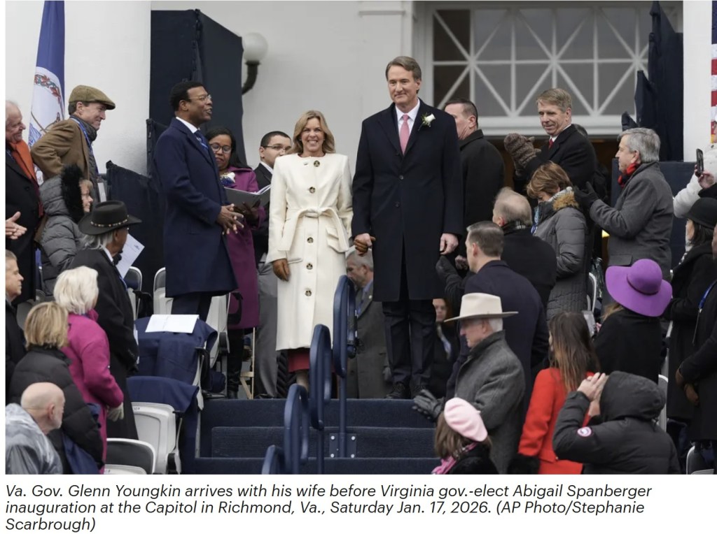 Over the ensuing four years, Youngkin was a popular governor with steady job approval around 54 percent. But since Virginia governors are limited to one four-year term, at last Saturday’s inauguration, he became an unemployed multimillionaire. (More on that later.)