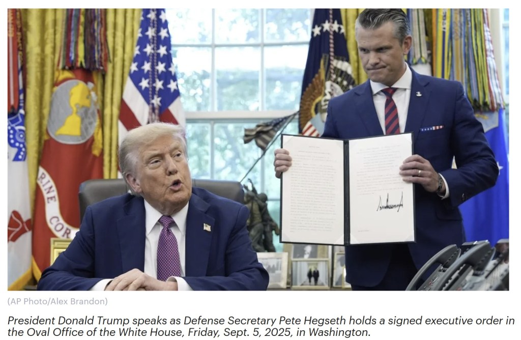 On Sept. 5, Trump signed an executive order to reinstate the name “Department of War,” which had been archived since the Department of Defense was created by the National Security Act of 1947.