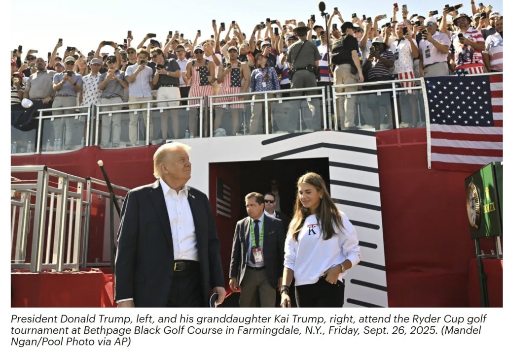 Kia Trump, age 18: The president’s oldest grandchild, a high school senior and talented golfer, has skillfully branded herself and turned the Trump name into a “KT” monogrammed sweatshirt line. Priced at a steep $130, Kia (Don Jr.’s daughter) wore the sweatshirt while attending the prestigious Ryder Cup with “grandpa,” earning priceless free advertising.